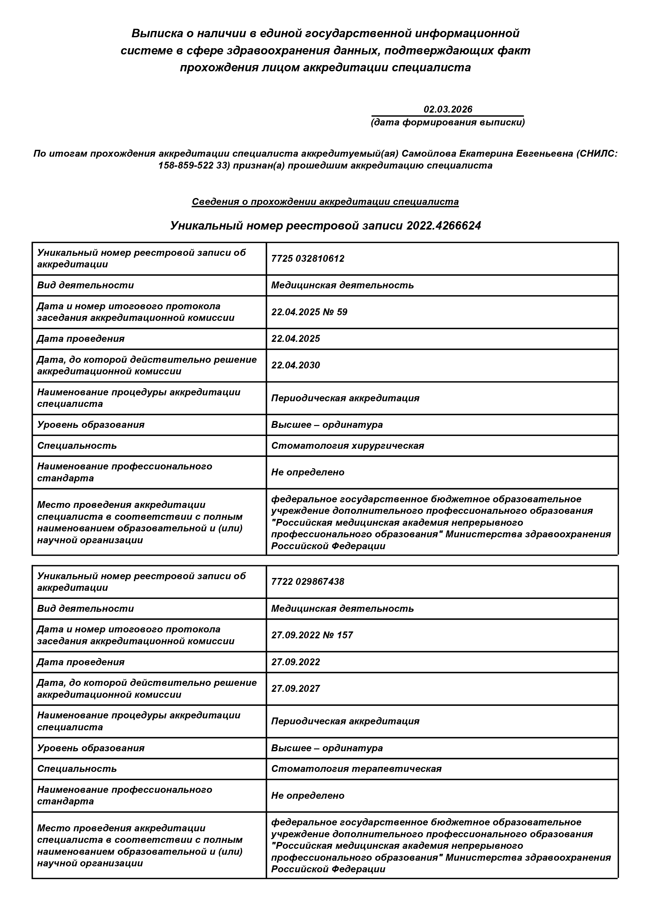 Самойлова Екатерина Евгеньевна